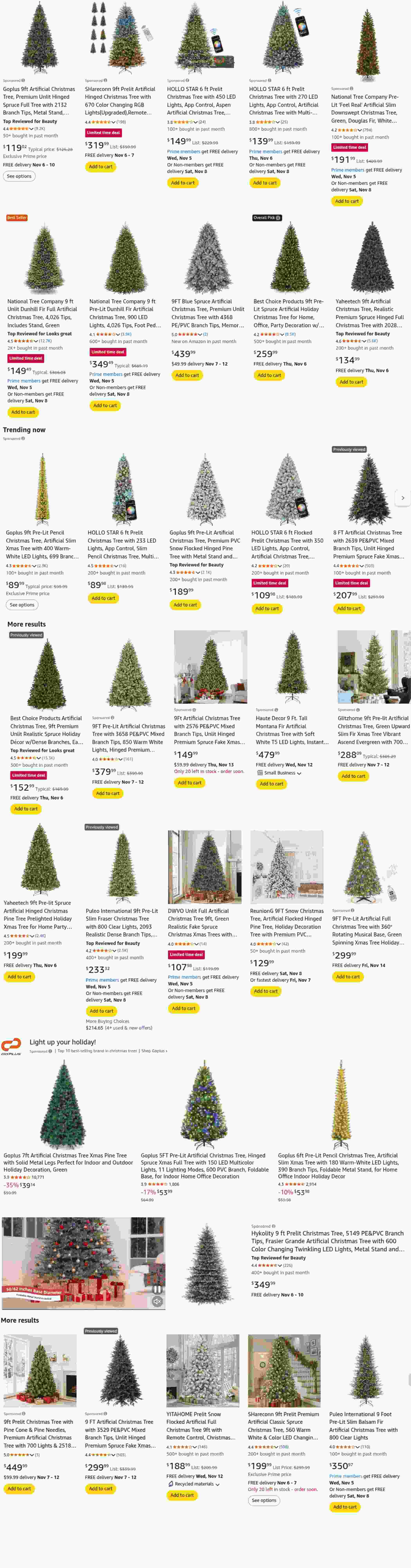 https://www.amazon.com/s?k=9ft+slim+christmas+tree+clear+lights+green+dense+branch+easy+setup+sturdy+metal+stand